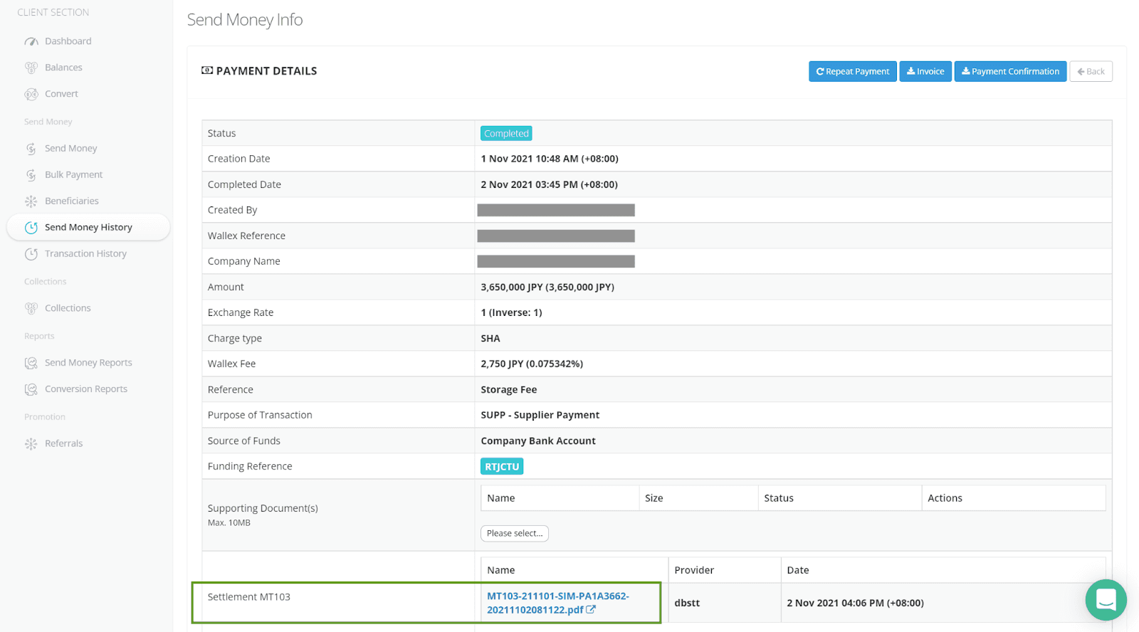 One of the main findings from the survey was that our users were struggling with the lack of payment confirmation on our platform. Many mentioned a specific type of payment confirmation they required, MT103 (a payment confirmation message generated by the SWIFT network).