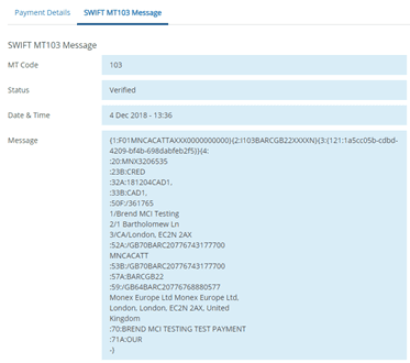 The two options shown above are the structured MT103, making it easier to read and the raw one.