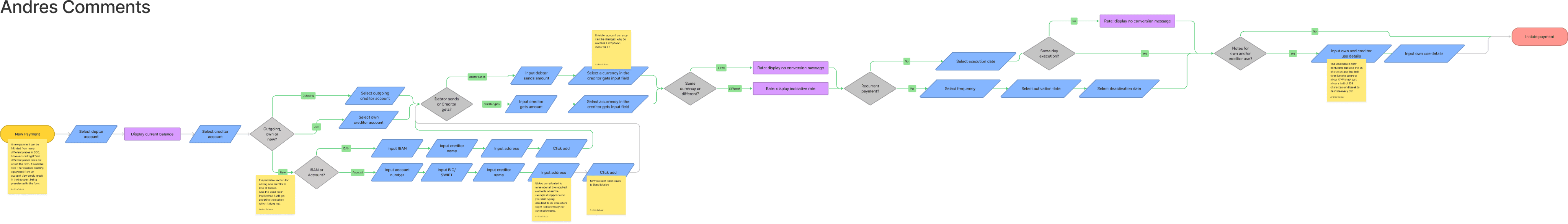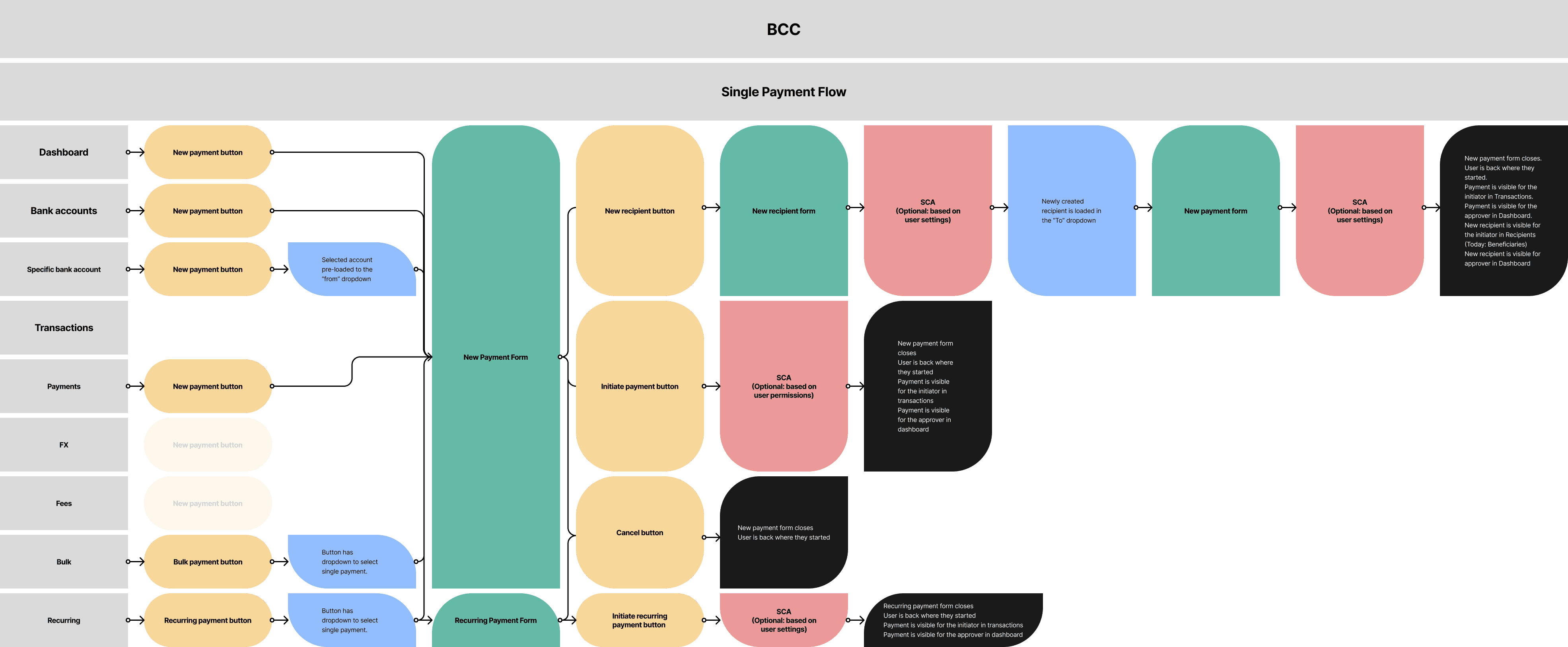 There is only one button and one form for all types of payments. This makes the payment flow overly complicated for some flows and it also confuses users looking for other flows, that do not expect them to be merged into one.