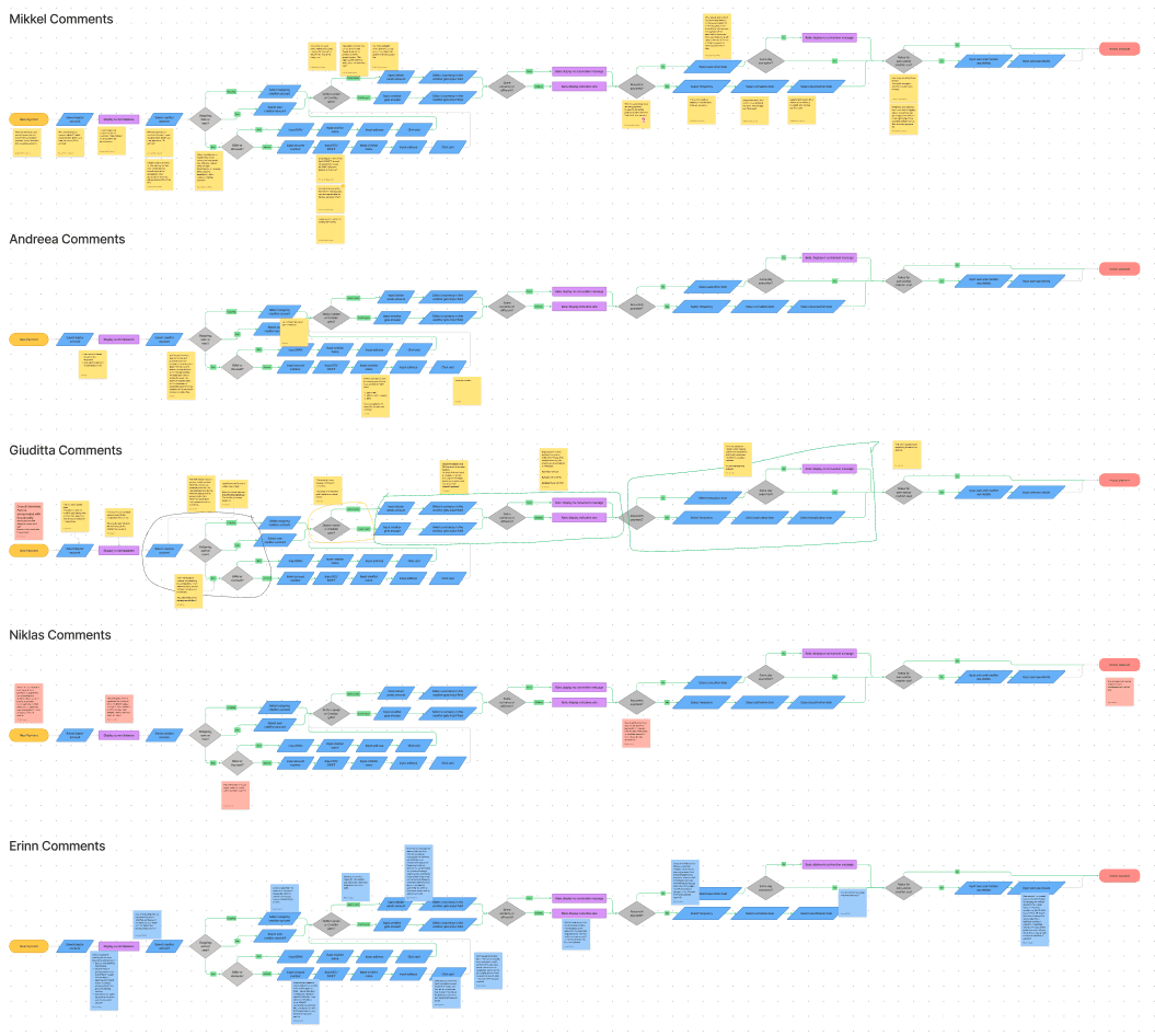 For the homework, I shared a Figjam page with every participant with my diagram of the user flow and asked them to add comments to the areas of the flow where they considered our user’s had some struggles.